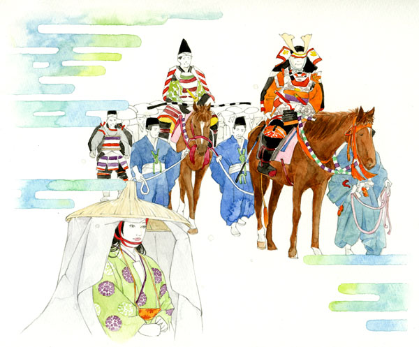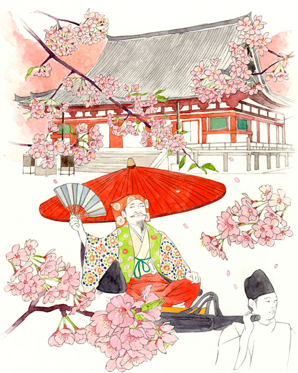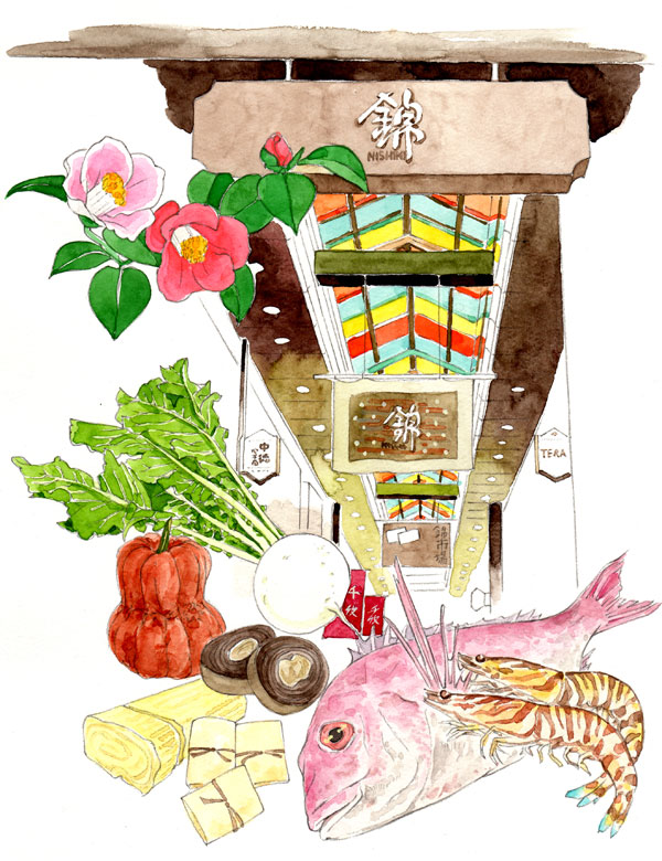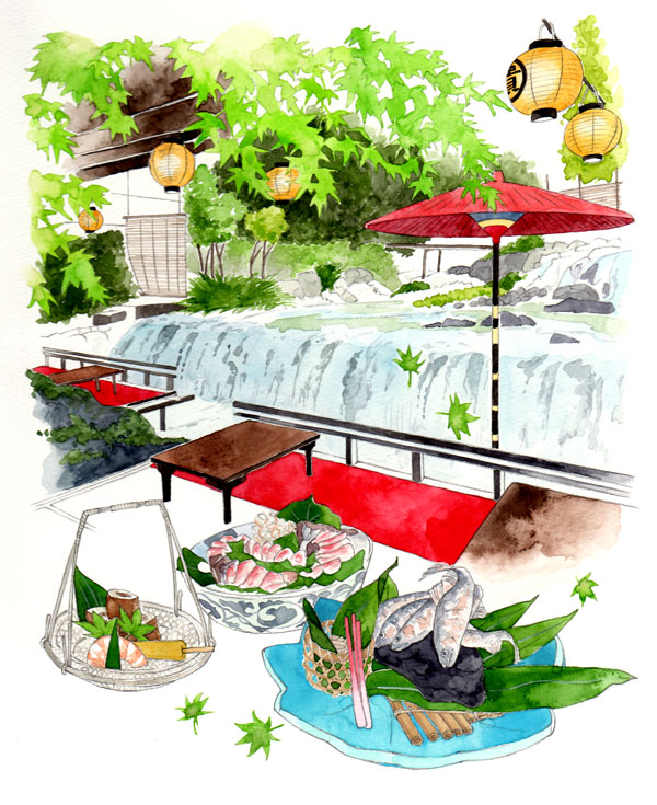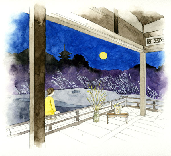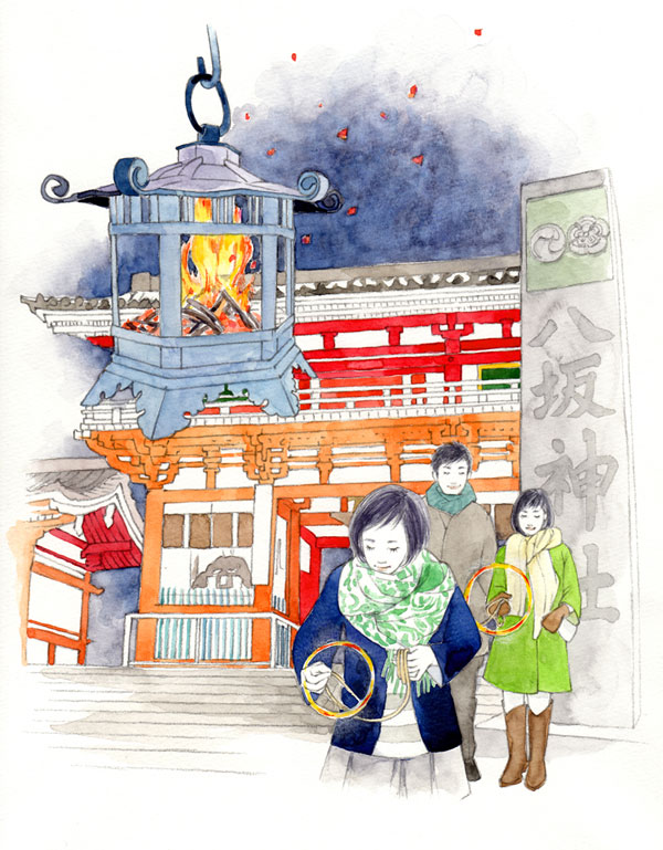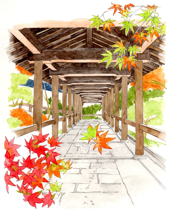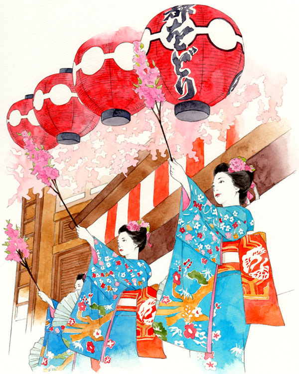 月桂冠が東京メトロ全線、東急線全線、京王線全線、小田急線全線、東武線全線、西武線全線にて展開するドアステッカー広告でイラストを描いています。 テーマは「京都からの絵手紙」。