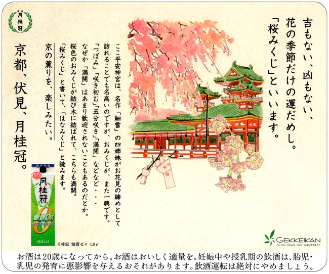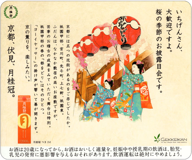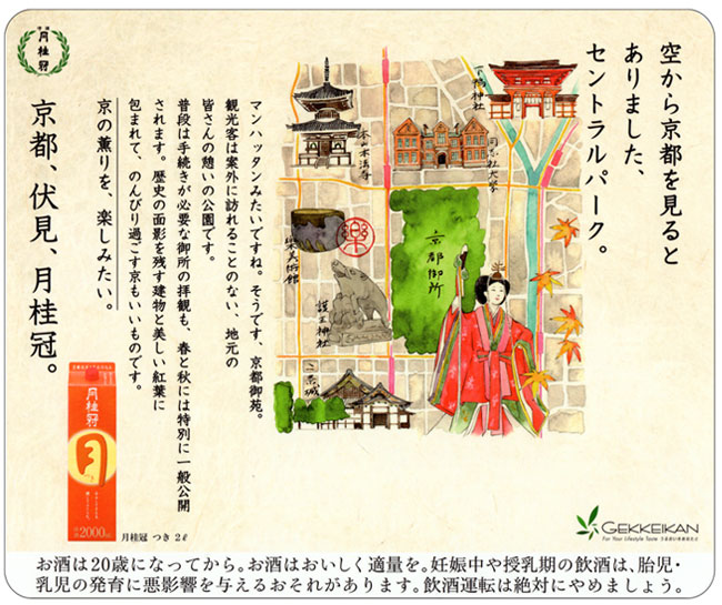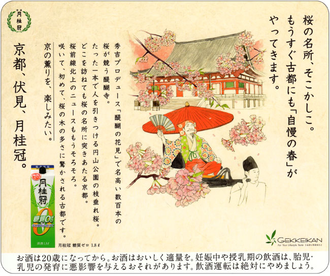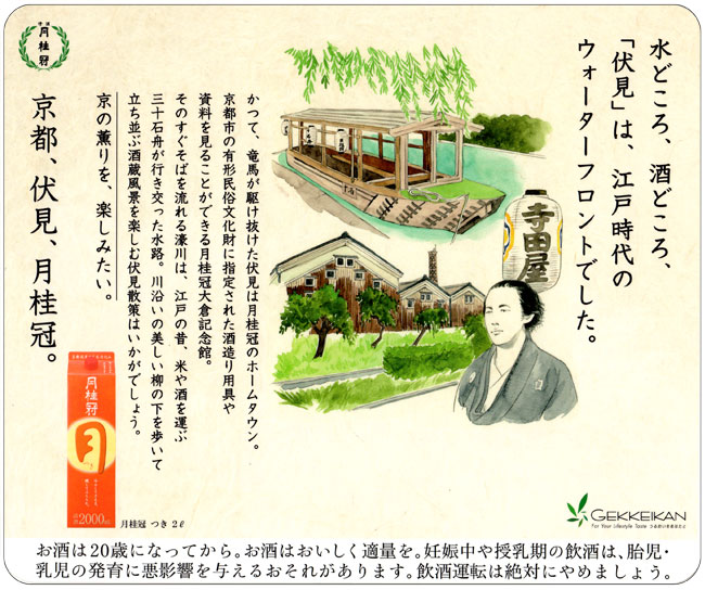 I drew the illustrations for ad stickers on the doors of train cars in Gekkeikan Sake Company,Ltd.