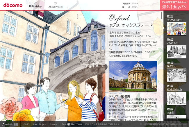 【内容】 ドコモ Webマガジン「 最高の1day 」 <2013.12月から連載中>