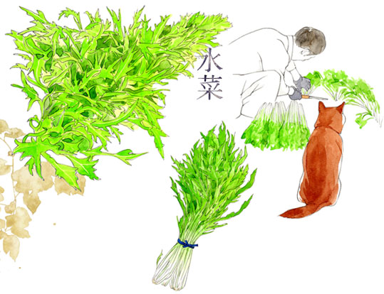 「いただきますTV」プロデュースで、育てて、収穫して、いただく、という流れで7種類の京野菜を描きました。