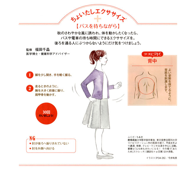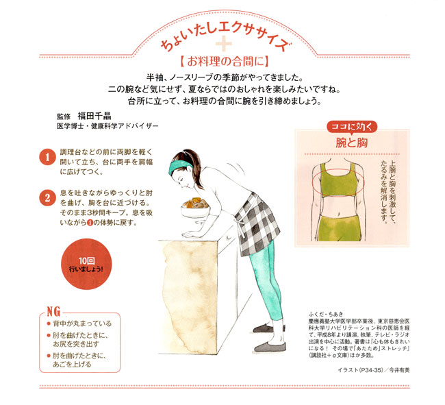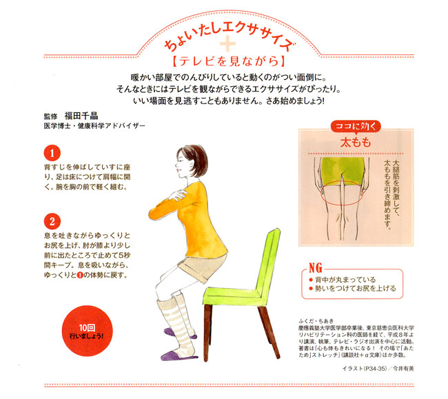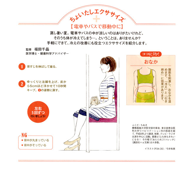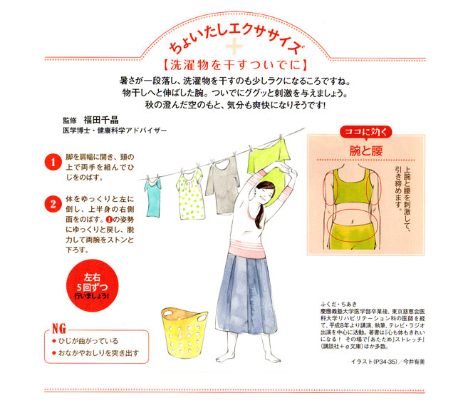 【内容】 会員誌「笑顔」 友野なおのインナービューティー/ちょいたしエクササイズ 挿絵
