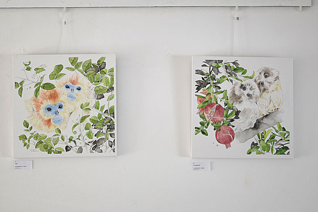 昨年のロス個展の数点と、今回新たに制作した新作と合わせて13点展示してもらいました。