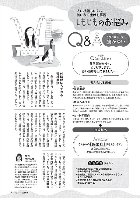 保健同人社から発行の会員誌「笑顔」で4月から「しもじものお悩みQ&A」のコーナーの挿絵を