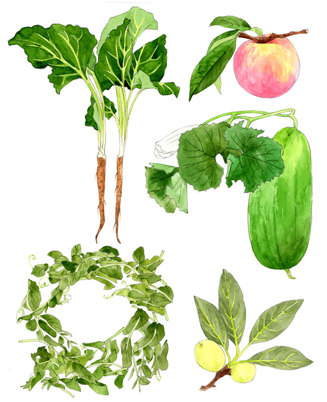 【内容】 フリーペーパー「FOODIE」 古来種野菜 挿絵 <2017.5月>